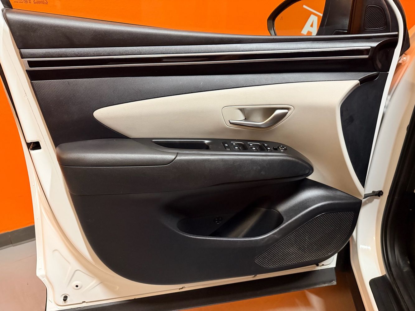 Door panel insert: Piano black and metal-look door panel insert