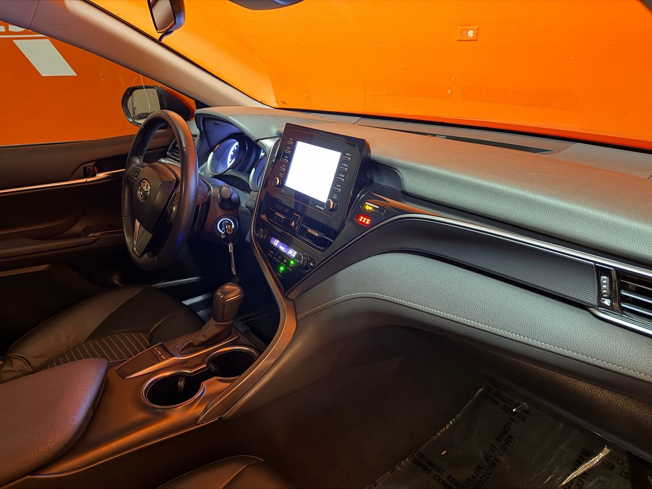 Floor console storage: Covered floor console storage